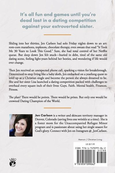 Sliding into her thirties, Jen Carlson had solo Friday nights down to an art: rom-com marathons, topknots, chocolate therapy, even sweats that read "It Took Me 30 Years to Look This Good." Sure, she had total control of her Netflix queue. But deep down Jen felt stuck-buried in debt, tired of the same old dating scene, feeling light-years behind her besties, and wondering if life would ever change. Then Jen received an unexpected phone call, sparking a vision for breakthrough. Determined to stop living like a baby sloth, Jen embarked on a yearlong quest to level up as a Christian single and become the person she always dreamed to be. She and her sister Lisa launched a dating competition packed with challenges to overhaul every square inch of their lives: Guys. Faith. Mental health. Finances. Fitness. The plan? There would be points. There would be prizes. But only one would be crowned Dating Champion of the World.