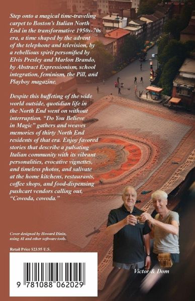 Step onto a magical time-traveling carpet to Boston's Italian North End in the transformative 1950s-70s era, a time shaped by the advent of the telephone and television, by a rebellious spirit personified by Elvis Presley and Marlon Brando, by Abstract Expressionism, school integration, feminism, the Pill, and Playboy magazine. Despite this buffeting of the wide world outside, quotidian life in the North End went on without interruption. "Do You Believe in Magic" gathers and weaves memories of thirty North End residents of that era. Enjoy favored stories that describe a pulsating Italian community with its vibrant personalities, evocative vignettes, and timeless photos, and salivate at the home kitchens, restaurants, coffee shops, and food-dispensing pushcart vendors calling out, "Cowoda, cowoda."