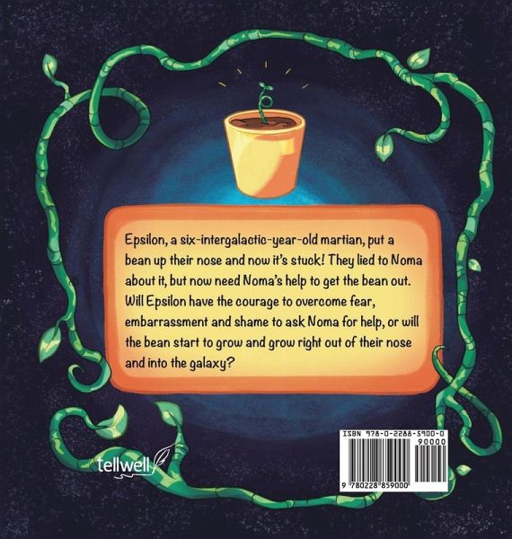 Epsilon, a six-intergalactic-year-old martian, put a bean up their nose and now it's stuck! They lied to Noma about it, but now need Noma's help to get the bean out. Will Epsilon have the courage to overcome fear, embarrassment and shame to ask Noma for help, or will the bean start to grow and grow right out of their nose and into the galaxy?