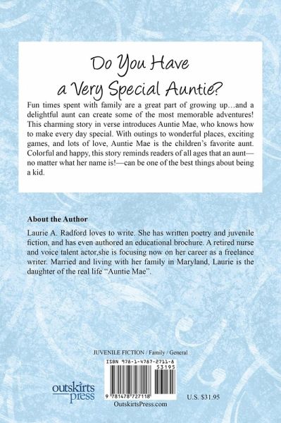 Do You Have a Very Special Auntie? Fun times spent with family are a great part of growing up...and a delightful aunt can create some of the most memorable adventures! This charming story in verse introduces Auntie Mae, who knows how to make every day special. With outings to wonderful places, exciting games, and lots of love, Auntie Mae is the children's favorite aunt. Colorful and happy, this story reminds readers of all ages that an aunt-no matter what her name is!-can be one of the best things about being a kid.