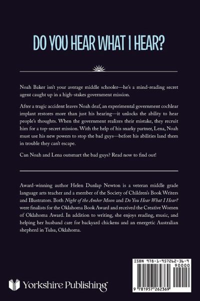 Noah Baker isn't your average middle schooler-he's a mind-reading secret agent caught up in a high-stakes government mission. After a tragic accident leaves Noah deaf, an experimental government cochlear implant restores more than just his hearing-it unlocks the ability to hear people's thoughts. When the government realizes their mistake, they recruit him for a top-secret mission. With the help of his snarky partner, Lena, Noah must use his new powers to stop the bad guys-before his abilities land them in trouble they can't escape. Can Noah and Lena outsmart the bad guys? Read now to find out!