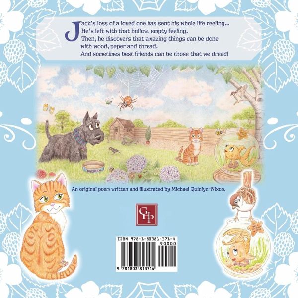 Do you know that hollow, empty feeling? Jack has lost a special person in his life and he's struggling with his loss. His four loving pets are aware of Jack's struggle, so they decide to give him individual gifts. Realising the gifts have not brought Jack any joy, it is left to a very clever and caring spider to help. Knowing that Jack is very scared of 'creepy-crawlies', Ariadne, the spider, has to involve his pets to come up with a solution, which will help Jack to express his feelings and begin the long-healing process. Will Ariadne's idea work and will Jack be able to face the future?