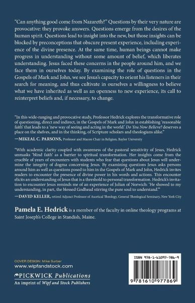 "Can anything good come from Nazareth?" Questions by their very nature are provocative: they provoke answers. Questions emerge from the desires of the human spirit. Questions lead to insight into the new, but those insights can be blocked by preconceptions that obscure present experience, including experience of the divine presence. At the same time, human beings cannot make progress in understanding without some amount of belief, which liberates understanding. Jesus faced these concerns in the people around him, and we face them in ourselves today. By examining the role of questions in the Gospels of Mark and John, we see Jesus's capacity to orient his listeners in their search for meaning, and thus cultivate in ourselves a willingness to believe what we have inherited as well as an openness to new experience, its call to reinterpret beliefs and, if necessary, to change.