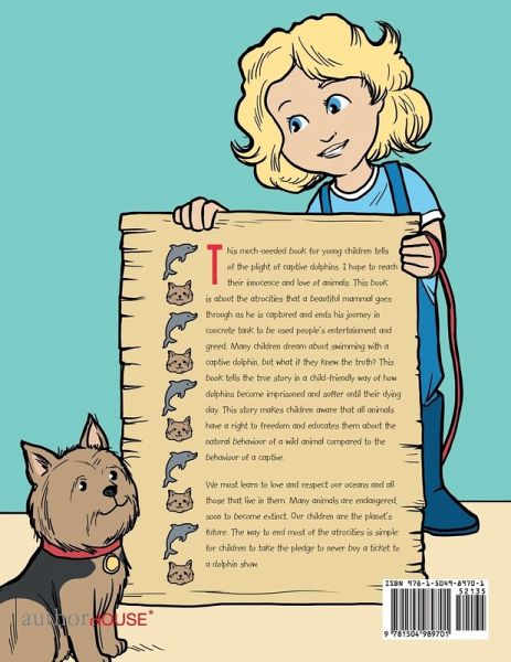 This much-needed book for young children tells of the plight of captive dolphins. I hope to reach their innocence and love of animals. This book is about the atrocities that a beautiful mammal goes through as he is captured and ends his journey in concrete tank to be used people's entertainment and greed. Many children dream about swimming with a captive dolphin, but what if they knew the truth? This book tells the true story in a child-friendly way of how dolphins become imprisoned and suffer until their dying day. This story makes children aware that all animals have a right to freedom and educates them about the natural behaviour of a wild animal compared to the behaviour of a captive. We must learn to love and respect our oceans and all those that live in them. Many animals are endangered, soon to become extinct. Our children are the planet's future. The way to end most of the atrocities is simple: for children to take the pledge to never buy a ticket to a dolphin show.