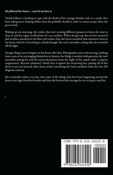 He followed her home ... and she let him in Tanith Fellows is battling to cope with the death of her younger brother and, as a result, she's been taking more sleeping tablets than she probably should in order to ensure escape when she goes to bed. Waking up one morning, she realises that she's wearing different pyjamas to those she went to sleep in and has vague recollections of a car accident. When she gets up, she sees her treasured jade necklace smashed on the floor and realises that she's been assaulted, that someone's been in the house with her. Everything is a blank though. She can't remember a thing after she switched off the light. Strange things start to happen in her house after that. Photographs seem to be moving, clothing items seem to be rearranging themselves in drawers, her fridge is stocked with groceries she can't remember paying for and the wayward pyjamas from the night of her attack make a surprise reappearance. Beyond exhausted, Tanith tries to ignore her increasing fear, putting all of this down to an over-stressed, often fuzzy, mind, something she's had a problem with since her MS diagnoses anyway. She eventually realises, too late, that some of the things that have been happening around the house were signs from her brother and that she'd missed the message he was trying to send her.