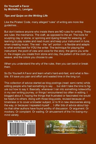 Like the Pirates' Code, many alleged "rules" of writing are more like guidelines… But don't believe anyone who insists there are NO rules for writing. There are rules: the mechanics. The craft, as opposed to the art. The tools for sculpting clay or stone, or spinning and dyeing thread for weaving, or learning to play scales and read music and keep your instrument in tune, when creating music. The rest -- the "art" portion -- is flexible and adapts to what works best for YOU the writer. The technique for playing the instrument, the point of view and voice for the story, the genre you write in, the images you create from stone and clay, the pattern of the cloth you weave, and the colors you choose to use. When you understand the why of the rules, then you can bend or break them. So Do Yourself A Favor and learn what's hard-and-fast, and what is flexible. It'll save you pain and effort and wasted time in the long run. This collection of advice started as blog postings (read: semi-rants) while editing people who had something to say … but didn't take the time to figure out how to say it. Basically, whenever I ran into something noteworthy in my own writing journey, or things I encountered too often in editing, I blogged about it, hoping the things that frustrated or fascinated me would be helpful to others. Along with those blog posts, revised because of timeliness or to cover a broader subject, or to fit in new discoveries along the way, or because I repeated myself … I offer bits of advice about topics that other authors have found worthy of discussion. Or argument. Or mockery. Or complaint. Or wailing. Or amusement of the I'm-losing-my-mind variety.