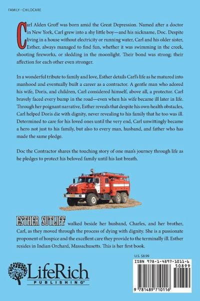Carl Alden Groff was born amid the Great Depression. Named after a doctor in New York, Carl grew into a shy little boy—and his nickname, Doc. Despite living in a house without electricity or running water, Carl and his older sister, Esther, always managed to find fun, whether it was swimming in the creek, shooting fireworks, or sledding in the moonlight. Their bond was strong; their affection for each other even stronger. In a wonderful tribute to family and love, Esther details Carl’s life as he matured into manhood and eventually built a career as a contractor. A gentle man who adored his wife, Doris, and children, Carl considered himself, above all, a protector. Carl bravely faced every bump in the road—even when his wife became ill later in life. Through her poignant narrative, Esther reveals that despite his own health obstacles, Carl helped Doris die with dignity, never revealing to his family that he too was ill. Determined to care for his loved ones until the very end, Carl unwittingly became a hero not just to his family, but also to every man, husband, and father who has made the same pledge. Doc the Contractor shares the touching story of one man’s journey through life as he pledges to protect his beloved family until his last breath.