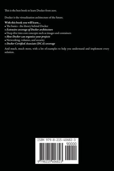 This is the best book to learn Docker from zero. Docker is the virtualization architecture of the future. With this book you will learn... • The basics - the theory behind Docker • Extensive coverage of Docker architecture • Deep dive into core concepts such as images and containers • How Docker can organize your projects • Networking, volumes, and security • Docker Certified Associate (DCA) coverage And much, much more, with a lot of examples to help you understand and implement every solution.