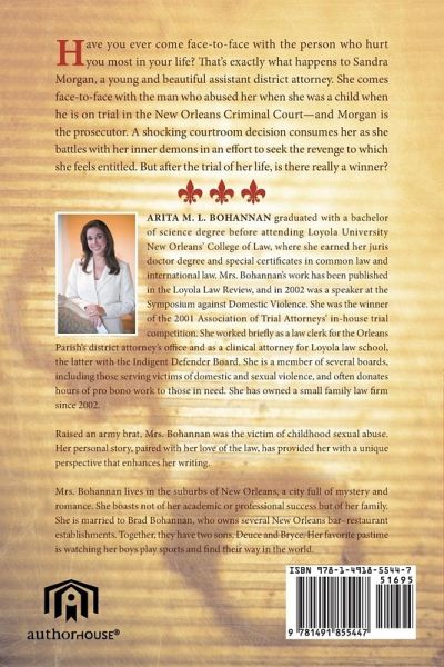 Have you ever come face-to-face with the person who hurt you most in your life? That's exactly what happens to Sandra Morgan, a young and beautiful assistant district attorney. She comes face-to-face with the man who abused her when she was a child when he is on trial in the New Orleans Criminal Court-and Morgan is the prosecutor. A shocking courtroom decision consumes her as she battles with her inner demons in an effort to seek the revenge to which she feels entitled. But after the trial of her life, is there really a winner?