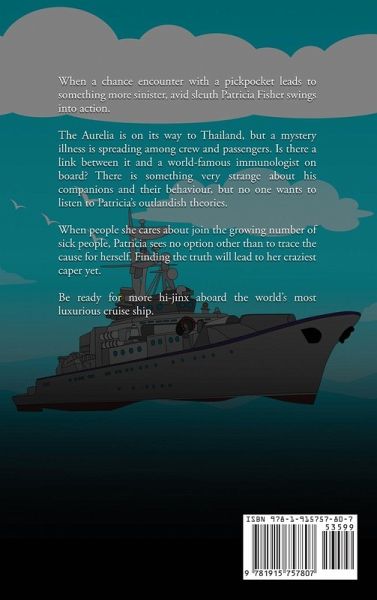 When a chance encounter with a pickpocket leads to something more sinister, avid sleuth Patricia Fisher swings into action. The Aurelia is on its way to Thailand, but a mystery illness is spreading among crew and passengers. Is there a link between it and a world-famous immunologist on board? There is something very strange about his companions and their behaviour, but no one wants to listen to Patricia's outlandish theories. When people she cares about join the growing number of sick people, Patricia sees no option other than to trace the cause for herself. Finding the truth will lead to her craziest caper yet. Be ready for more hi-jinx aboard the world's most luxurious cruise ship.