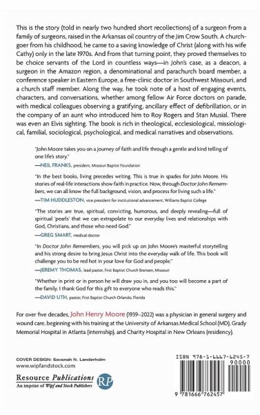 This is the story (told in nearly two hundred short recollections) of a surgeon from a family of surgeons, raised in the Arkansas oil country of the Jim Crow South. A churchgoer from his childhood, he came to a saving knowledge of Christ (along with his wife Cathy) only in the late 1970s. And from that turning point, they proved themselves to be choice servants of the Lord in countless ways--in John's case, as a deacon, a surgeon in the Amazon region, a denominational and parachurch board member, a conference speaker in Eastern Europe, a free-clinic doctor in Southwest Missouri, and a church staff member. Along the way, he took note of a host of engaging events, characters, and conversations, whether among fellow Air Force doctors on parade, with medical colleagues observing a gratifying, ancillary effect of defibrillation, or in the company of an aunt who introduced him to Roy Rogers and Stan Musial. There was even an Elvis sighting. The book is rich in theological, ecclesiological, missiological, familial, sociological, psychological, and medical narratives and observations.
