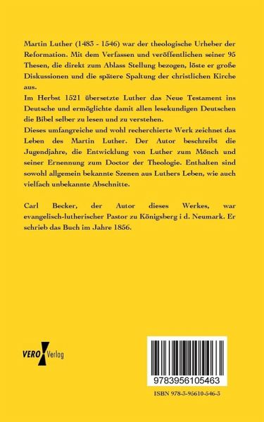 Dieses umfangreiche und wohl recherchierte Werk zeichnet das Leben des Martin Luther. Der Autor beschreibt die Jugendjahre, die Entwicklung von Luther zum Mönch und seiner Ernennung zum Doctor der Theologie. Enthalten sind sowohl allgemein bekannte Szenen aus Luthers Leben, wie auch vielfach unbekannte Abschnitte.
