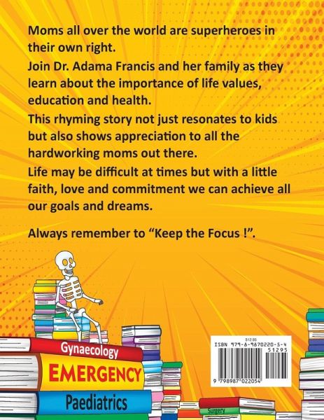 Teaching your kids essential values like manners, respect and determination may feel like a challenge, so let "Doctor Mommy Our Superhero" save the day - A heartwarming rhyming tale that educates and inspires kids and parents alike! Having a hard time teaching your kids good manners and respect in todays world? Wanting to instill strong family values and foster a sense of togetherness in your children? Wanting to inspire your kids to dream big and work hard to achieve their goals, but aren't sure how to approach the topic effectively? In "Doctor Mommy Our Superhero", we delve into the challenges parents face in nurturing their children's character despite the distractions of modern life. Through the heartwarming poem of Doctor Mommy, a compassionate mother, doctor and superhero, children learn the importance of education, respect, manners, politeness, helping others, and staying healthy (just to name a few). By following Doctor Mommy's journey, young readers are inspired to embody these virtues in their own lives.Even better? Here's what more you and your child can gain:Have a role model like Doctor Mommy to look up to so that your kids can have a positive influence on their decisions. Get actionable tips and everyday examples in rhyming story format to help parents navigate complex topics like manners, respect, and goal-setting with ease. Facilitate meaningful discussions between parents and children about important topics to strengthen family bonds. Encourage kids to dream big and pursue their passions, so that they can look to the future with confidence and the right mindset. Help readers young and old understand the value of education and lifelong learning in an engaging and accessible format. And more! "Doctor Mommy Our Superhero" is a darling tribute to one mom and others just like her-all while imparting valuable lessons for kids on determination, respect, good manners, health, and more!Ready to strengthen your family's bond and inspire your children to become compassionate, respectful, and resilient individuals? Then pick up your copy today!