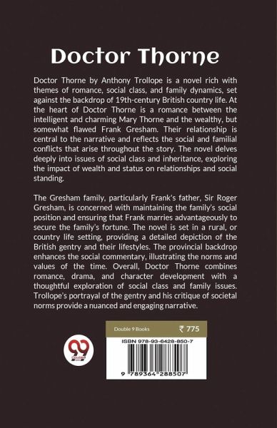 Doctor Thorne by Anthony Trollope is a novel rich with themes of romance, social class, and family dynamics, set against the backdrop of 19th-century British country life. At the heart of Doctor Thorne is a romance between the intelligent and charming Mary Thorne and the wealthy, but somewhat flawed Frank Gresham. Their relationship is central to the narrative and reflects the social and familial conflicts that arise throughout the story. The novel delves deeply into issues of social class and inheritance, exploring the impact of wealth and status on relationships and social standing. The Gresham family, particularly Frank's father, Sir Roger Gresham, is concerned with maintaining the family's social position and ensuring that Frank marries advantageously to secure the family's fortune. The novel is set in a rural, or country life setting, providing a detailed depiction of the British gentry and their lifestyles. The provincial backdrop enhances the social commentary, illustrating the norms and values of the time. Overall, Doctor Thorne combines romance, drama, and character development with a thoughtful exploration of social class and family issues. Trollope's portrayal of the gentry and his critique of societal norms provide a nuanced and engaging narrative.