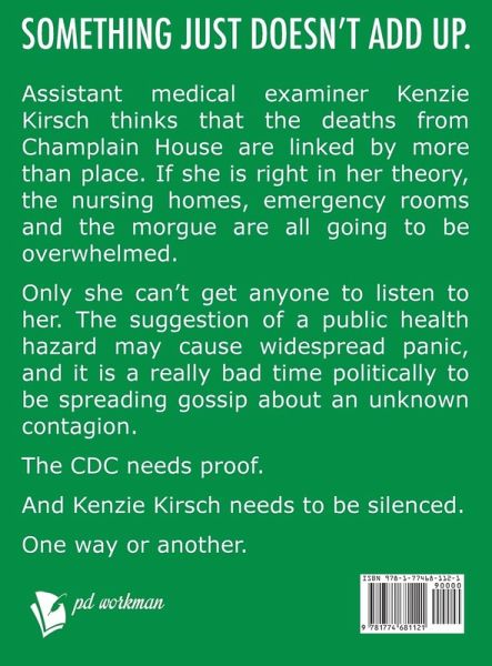 From USA Today Bestselling Author, P.D. Workman! ¿ Something just doesn't add up. Assistant Medical Examiner Kenzie Kirsch thinks that the deaths from Champlain House are linked by more than place. If she is right in her theory, the nursing homes, emergency rooms and the morgue are all going to be overwhelmed. Only she can't get anyone to listen to her. The suggestion of a public health hazard may cause widespread panic, and it is a really bad time politically to be spreading gossip about an unknown contagion. The CDC needs proof. And Kenzie Kirsch needs to be silenced. One way or another. ¿¿¿¿¿¿¿¿¿¿Every book by PD Workman that I've read has been a gripping one, however different the genres are, going from lighter mysteries to really dark ones... this is one of my favourite, most dependable authors. If you are a reader of the Zachary Goldman Mysteries series, you have already met Kenzie Kirsch. This series is a spinoff from Zachary Goldman Mysteries, giving Kenzie a front-and-center position in solving medical mysteries. Looking for a strong female lead in an engaging medical mystery? Award-winning and USA Today Bestselling Author P.D. Workman brings you an up-and-coming Medical Examiner's Assistant who is right up your alley. Join Dr. Kenzie Kirsch as she uncovers mysteries, conspiracies, and thrills! Large print edition This edition has been formatted with Verdana 18 pt, 1.5 line spacing, and double-spaced paragraphs in accordance with the recommendations of the American Council for the Blind.