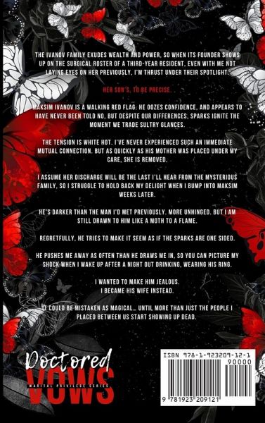 The Ivanov family exudes wealth and power, so when its founder shows up on the surgical roster of a third-year resident, even with me not laying eyes on her previously, I'm thrust under their spotlight. Her son's, to be precise. Maksim Ivanov is a walking red flag. He oozes confidence, and appears to have never been told no, but despite our differences, sparks ignite the moment we trade sultry glances. The tension is white hot. I've never experienced such an immediate mutual connection. But as quickly as his mother was placed under my care, she is removed. I assume her discharge will be the last I'll hear from the mysterious family, so I struggle to hold back my delight when I bump into Maksim weeks later. He's darker than the man I'd met previously. More unhinged. But I am still drawn to him like a moth to a flame. Regretfully, he tries to make it seem as if the sparks are one sided. He pushes me away as often than he draws me in, so you can picture my shock when I wake up after a night out drinking, wearing his ring. I wanted to make him jealous. I became his wife instead. It could be mistaken as magical... until more than just the people I placed between us start showing up dead.