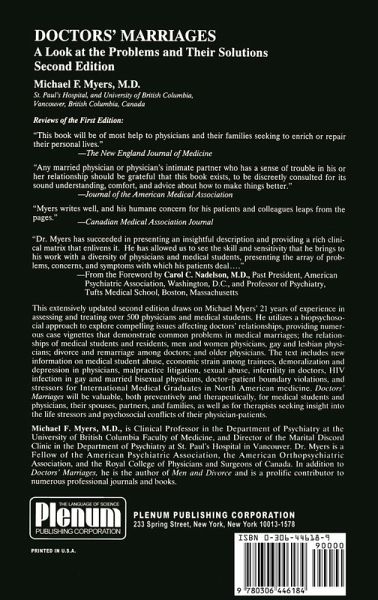 Responding to demographic changes among physicians and six years of new experiences since the first edition, Dr. Myers has revamped his well received work. He includes new information on older physicians, gay and lesbian physicians, medical student abuse, economic strain on interns, depression, malpractice, ethical violations, and other stressors which may cause marital difficulties.