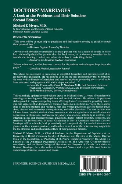 Responding to demographic changes among physicians and six years of new experiences since the first edition, Dr. Myers has revamped his well received work. He includes new information on older physicians, gay and lesbian physicians, medical student abuse, economic strain on interns, depression, malpractice, ethical violations, and other stressors which may cause marital difficulties.