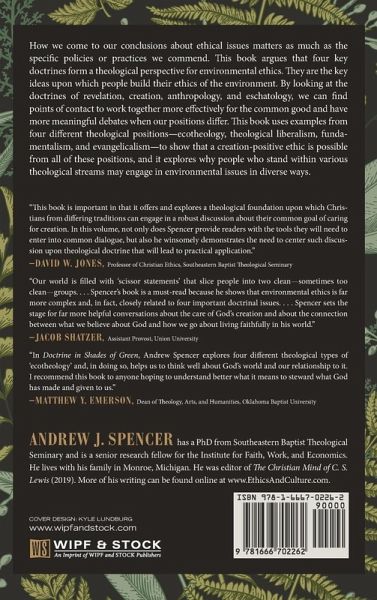 How we come to our conclusions about ethical issues matters as much as the specific policies or practices we commend. This book argues that four key doctrines form a theological perspective for environmental ethics. They are the key ideas upon which people build their ethics of the environment. By looking at the doctrines of revelation, creation, anthropology, and eschatology, we can find points of contact to work together more effectively for the common good and have more meaningful debates when our positions differ. This book uses examples from four different theological positions--ecotheology, theological liberalism, fundamentalism, and evangelicalism--to show that a creation-positive ethic is possible from all of these positions, and it explores why people who stand within various theological streams may engage in environmental issues in diverse ways.