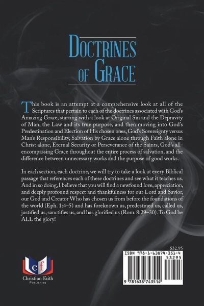 This book is an attempt at a comprehensive look at all of the Scriptures that pertain to each of the doctrines associated with God's Amazing Grace, starting with a look at Original Sin and the Depravity of Man, the Law and its true purpose, and then moving into God's Predestination and Election of His chosen ones, God's Sovereignty versus Man's Responsibility, Salvation by Grace alone through Faith alone in Christ alone, Eternal Security or Perseverance of the Saints, God's all-encompassing Grace throughout the entire process of salvation, and the difference between unnecessary works and the purpose of good works. In each section, each doctrine, we will try to take a look at every Biblical passage that references each of these doctrines and see what it teaches us. And in so doing, I believe that you will find a newfound love, appreciation, and deeply profound respect and thankfulness for our Lord and Savior, our God and Creator Who has chosen us from before the foundations of the world (Eph. 1:4-5) and has foreknown us, predestined us, called us, justified us, sanctifies us, and has glorified us (Rom. 8:29-30). To God be ALL the glory!