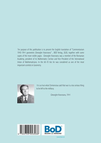 The purpose of this publication is to present the English translation of "Commentarium 1940-1944 geometres Gheorghe Vranceanu" , BOD Verlag, 2020, together with some copies of the more visible pages as documents. Gheorghe Vranceanu was a member of Romanian Academy, president of its Mathematics Section and Vice-President of the International Union of Mathematicians. In the 60-70 ties he was considered as one of the most important scientiests in Geometry.