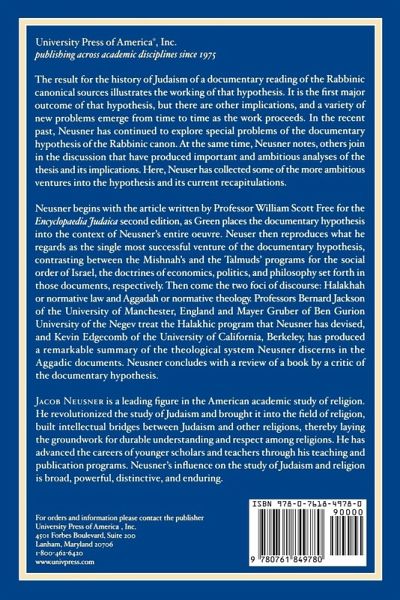 Neuser has collected some of the more ambitious ventures into the documentary hypothesis of the Rabbinic canon and its current recapitulations. Neusner begins with the article written by Professor William Scott Free for Encyclopaedia Judaica second edition, as Green places the documentary hypothesis into the context of Neusner's entire oeuvre.