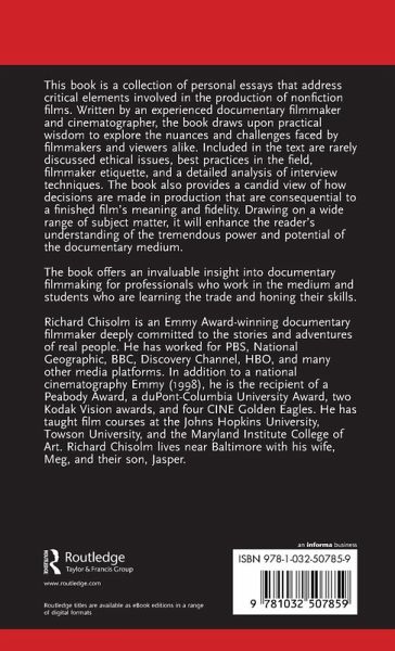 "With insightful, concise language, documentarian Richard Chisolm walks the reader through the essential stages of nonfiction filmmaking. No one emerging from the text will do so uneducated about the process of capturing and assembling footage to tell a compelling story. It's especially great for students but also serves as an accessible primer to casual lovers of cinema." - Christopher Llewellyn Reed, Chair/Professor, Film & Moving Image, Stevenson University