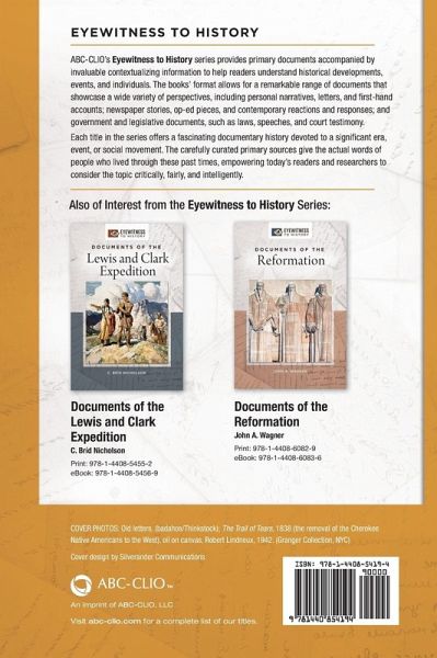 Evaluating and Interpreting Primary Documents Historical Introduction Chronology Chapter 1 Evolution of Federal Government Policies 1778-1829 1. Treaty of Fort Pitt (Delaware) September 17 1778 2. Secretary of War Henry Knox Report on the Northwestern Indians June 15 1789 3. Chief Cornplanter or John Abeel Big Tree and Half-Town (Seneca) Letter to President Washington December 1 1790 4. President Jefferson to William Henry Harrison February 27 1803 5. Cherokee Women Petition May 2 1817 6. Treaty with the Cherokee July 8 1817 7. Statement of Menominees Concerning Treaties Ceding Lands in Wisconsin to the Indians of New York 1824 8. President Monroe Message on Indian Removal January 27 1825 9. Secretary of War John Eaton on Cherokee Removal April 18 1829 10. President Jackson on Indian Removal April 18 1829 Chapter 2 Rhetoric of Removal 1829-1830 11. President Jackson on Indian Removal December 8 1829 12. Catherine Beecher Circular: Addressed to Benevolent Ladies of the U. States December 25 1829 13. Governor Lewis Cass of Michigan Territory Removal of the Indians January 1830 14. Senator Hugh White (Tennessee) Bill from Committee on Indian Affairs February 22 1830 15. Senator Theodore Frelinghuysen (New Jersey) against Indian Removal April 9 1830 16. Indian Removal Act May 28 1830 17. Elias Boudinot (Cherokee) Editorial Cherokee Phoenix June 19 1830 18. President Jackson to John Pitchlynn August 5 1830 Chapter 3 Removals 1830-1836 19. Treaty of Dancing Rabbit Creek Choctaw September 27 1830 20. President Jackson State of the Union Address December 6 1830 21. Commissioner of Indian Affairs Elbert Herring Describes Removal as Humane November 8 1831 22. Chief George Harkins (Choctaw) A Choctaw Farewell February 1832 23. U.S. Supreme Court Worcester v. Georgia March 3 1832 24. Treaty with the Seminole 1833 25. David Crockett to Charles Schultz December 25 1834 26. President Jackson on Indian Removal December 7 1835 27. Chickasaw Chiefs Letter to Andrew Jackson December 24 1835 28. Treaty of New Echota December 29 1835 29. Lieutenant J. T. Sprague Removed Creeks Travel West 1836 30. Lieutenant J. Van Horne Journal of a Party of Seminole Indians Removal April 11-June 6 1836 Chapter 4 Ethnic Cleansing 1836-1844 31. Memorial of Protest of the Cherokee Nation June 22 1836 32. General John Wool Cherokee Are Urged to Comply March 22 1837 33. Lieutenant Edwards Deas Journal of Occurrences on the Route of a Party of Emigrating Creek Indians May 25-June 5 1837 34. Reverend Daniel S. Butrick Removal Journal May 26-July 20 1838 35. Congressman Joshua Giddings Slavery and the Seminal War February 9 1841 36. Tonawanda Seneca Clan Mothers' Support of Chiefs' Efforts to Protest Treaty of Buffalo Creek of 1838 March 14 1841 37. Coacooche (Seminole) Surrender of a Seminole Band July 4 1841 38. Tonawanda Chiefs' Advertisement Asking the Non-Indians of Western New York Not to Purchase Reservation Lands from the Ogden Land Company Spirit of the Times June 19 1844 Chapter 5 Responses to Removal 1854-1879 39. Chief Seattle's Treaty Oration 1854 40. Commissioner of Indian Affairs Ely Parker (Seneca) Letter of General Ulysses Grant January 24 1864 41. Captain Soules's Letter to Major Ned Wynkoop December 14 1864 42. Lieutenant Joseph Cramer Letter to Major Wynkoop December 19 1864 43. Palaneapope (Yankton Sioux) How the Indians Are Victimized by Government Agents and Soldiers August 1865 44. Little Hill (Winnebago) The Condition of the Winnebago Indians of Nebraska October 3 1865 45. Blackfoot (Crow) Testimony about the White Man's Promises and Intentions August 11 1873 46. Chief Joseph or Hinmahtooyahlatkekt (Nez Perce) The Fate of the Nez Perces Tribe April 1879 47. Hairy Bear (Ponca) The Killing of Big Snake a Ponca Chief October 31 1879 Chapter 6 Who Owns the Land? 1891-1932 48. Sitting Bull (Hunkpapa Sioux) Keeping Treaties Life of Sitting Bull 1891 49. D.W.C. Duncan (Cherokee) How Allotment Impoverishes the Indians: Testimony before a Senate Committee November 1906 50. Geronimo (Apache) A Prisoner of War His Own Story 1906 51. Cherokee Freedmen We Can Establish Our Rights 1913 52. WPA Interview of Kate Rackleff Daughter of Cherokee Trail of Tears Survivor Rebecca Neugin (Cherokee) Recollections of Removal 1937 Bibliography Index