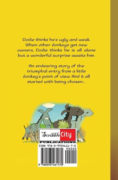 Dodie thinks he's ugly and weak.When other donkeys get new owners, Dodie thinks he is all alone but a wonderful surprise awaits him.An endearing story of the triumphal entry from a little donkey's point of view. And it all started with being chosen...