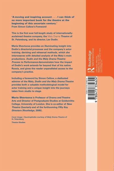 Including a foreword by Simon Callow, a dedicated admirer of the Maly, Dodin and the Maly Drama Theatre provides both a valuable methodological model for actor training and a unique insight into the journeys taken from studio to stage. This is the first ever full-length study of internationally-acclaimed theatre company, the Maly Drama Theatre of St. Petersburg, and its director, Lev Dodin.Maria Shevtsova provides an illuminating insight into Dodin's directorial processes and the company's actor 4raining, devising and rehearsal methods, which she interweaves with detailed analysis of the Maly's main productions. Dodin and the Maly Drama Theatre: Process to Performance demonstrates how the impact of Dodin's work extends far beyond that of his native Russia, and gives the reader unparalleled access to the company's practice.
