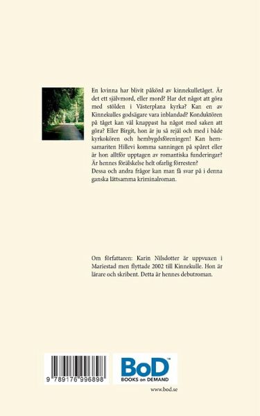 En kvinna blir påkörd av Kinnekulletåget. Är det ett självmord, eller mord? Har det något att göra med stölden i Västerplana kyrka? Kan en av Kinnekulles godsägare vara inblandad? Konduktören på Kinnekulletåget kan väl knappast ha med saken att göra? Eller, Birgit, hon är ju så gammal och rejäl, med i både kyrkokören och hembygdsföreningen! Kan hemsamariten Hillevi komma sanningen på spåret eller är hon alltför upptagen av romantiska funderingar? Är hennes förälskelse helt ofarlig förresten?
