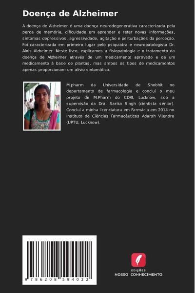 A doença de Alzheimer é uma doença neurodegenerativa caracterizada pela perda de memória, dificuldade em aprender e reter novas informações, sintomas depressivos, agressividade, agitação e perturbações da perceção. Foi caracterizada em primeiro lugar pelo psiquiatra e neuropatologista Dr. Alois Alzheimer. Neste livro, explicamos a fisiopatologia e o tratamento da doença de Alzheimer através de um medicamento aprovado e de um medicamento à base de plantas, mas ambos os tipos de medicamentos apenas proporcionam um alívio sintomático.