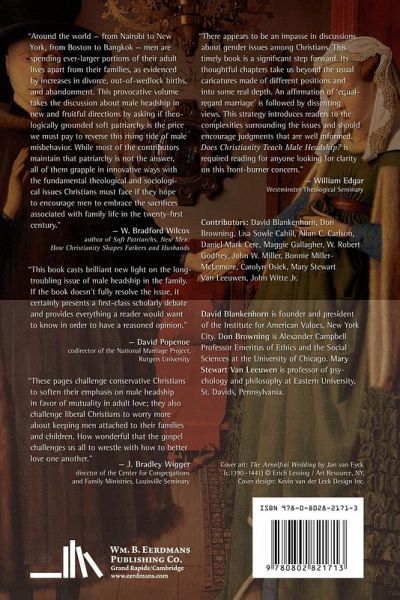 This is not just another book on the perennial issue of male headship. In contrast to those who regard Christianity as the great source of male domination, this book argues that authentic Christianity does not teach that husbands have spiritual superiority over their wives, and its authors listen to and engage those that still claim that it does. Written by distinguished Protestant and Roman Catholic scholars, the book first demonstrates how deep strands of the Christian tradition have always taught an ethic of gender mutuality. Though patriarchy was pervasive in the ancient world surrounding early Christianity and sometimes influenced the church, new research shows that the earliest layers of Christianity both resisted and worked to transform it. They also sowed the seeds of the "equal-regard marriage." Not every author in the book agrees with this point of view; dissenters have their say too. But the two positions are not simply allowed to pass each other by. As a whole, the book constitutes a robust, respectful debate that, finally, invites readers to decide. Contributors: Don S. Browning Lisa Cahill Allan C. Carlson Daniel Mark Cere Maggie Gallagher W. Robert Godfrey Bonnie Miller- McLemore John W. Miller Carolyn Osiek Mary Stewart Van Leeuwen John Witte Jr.