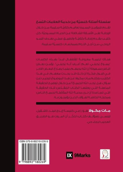 Many new believers have questions about what it means to live as a Christian in the context of a local church, and pastors are looking for resources to pass along to their congregations to help them think biblically about the Christian life. Church Questions is a series by 9Marks that seeks to provide Christians with sound and accessible biblical teaching by answering common questions about church life. Each booklet offers biblical answers and practical applications with the goal of nurturing healthy church practice and commitment. A popular children's song starts with the lyrics "Jesus loves me, this I know." Some people readily trust that they are loved by God, but others struggle to believe this is true for them. In this booklet, Matt McCullough addresses this topic by answering the question Does God love everyone? By directing us to the surprising answer found in the Bible, McCullough helps us to see God's genuine love for all people and his specific love for those who trust in him.