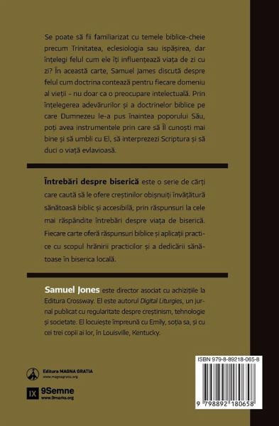How Sound Doctrine Influences Every Area of the Christian Life Doctrine might be something you've heard in church, but how does it impact your life? Christian doctrine examines what the Bible teaches about particular topics, such as the nature of God, the nature of humanity, how humans should live, and more. By understanding biblical truths, believers have the tools to understand God, interpret Scripture, and live godly lives. In this addition to the Church Questions series, Samuel James addresses how doctrine influences every area of life for the believer. Many individuals know that their beliefs matter in certain areas of life, such as politics, but don't always understand how key biblical principles like the Trinity, ecclesiology, and the atonement should shape their everyday lives. It is easy to think that doctrine is only for theologians, but in reality, it is essential for everyone-humanity was created to know the truth about God, themselves, and the world.