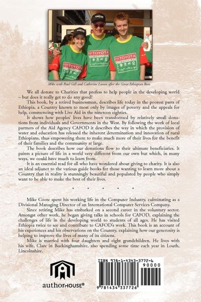 We all donate to Charities that profess to help people in the developing world - but does it really get to do any good? This book, by a retired businessman, describes life today in the poorest parts of Ethiopia, a Country known to most only by images of poverty and the appeals for help, commencing with Live Aid in the nineteen eighties. It shows how peoples' lives have been transformed by relatively small donations from individuals and Governments in the West. By following the work of local partners of the Aid Agency CAFOD it describes the way in which the provision of water and education has released the inherent determination and innovation of rural Ethiopians, thus empowering them to make much more of their lives for the benefit of their families and the community at large. The book describes how our donations flow to their ultimate beneficiaries. It paints a picture of life in a world very different from our own but which, in many ways, we could have much to learn from. It is an essential read for all who have wondered about giving to charity. It is also an ideal adjunct to the various guide books for those wanting to learn more about a Country that in reality is stunningly beautiful and populated by people who simply want to be able to make the best of their lives.