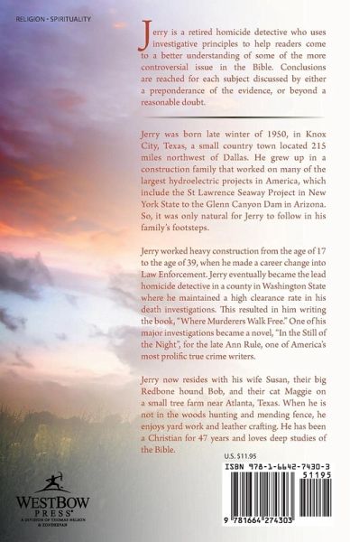 Jerry is a retired homicide detective who uses investigative principles to help readers come to a better understanding of some of the more controversial issue in the Bible. Conclusions are reached for each subject discussed by either a preponderance of the evidence, or beyond a reasonable doubt.