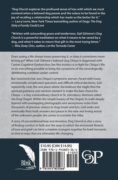 Does saving a life always mean preserving it, or does it sometimes mean letting go? When Gail Gilmore’s beloved dog Chispa is diagnosed with Canine Cognitive Dysfunction, her first instinct is to fight for Chispa’s life; to do everything possible to bring the symptoms of this neurologically debilitating condition under control. But treatments fail, and Chispa’s symptoms worsen. Faced with many emotionally complicated questions and difficult ethical decisions, Gail repeatedly visits the one place where she believes she might find the spiritual guidance and wisdom needed to make the best choice for Chispa—a tiny, extraordinary church in St. Johnsbury, Vermont called the Dog Chapel. Within the simple beauty of the chapel, its walls deeply layered with overlapping photographs and anonymous notes from thousands of previous visitors to dogs loved and lost, Gail seeks and eventually finds both answers and peace in the wise and loving words of the unknown people she comes to consider her tribe. A story of unconditional love and devotion, Dog Church is also a story of finding comfort in faith and the ways in which the emotional threads of love and grief can bind complete strangers together for brief moments in time in ways that are ultimately life-changing.