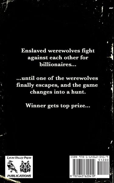 In a world run by billionaires and tyrants, the only way to survive is to fight. Enslaved and used in brutal fights to the death for the entertainment of billionaires, Lon longs for the freedom he once had as a human. Being caged, abused and neglected in a facility with other werewolves, he almost loses hope... until an unforeseen opportunity arises and he escapes. In order to cash in on the escape, the billionaire donors turn it into a live gameshow to hunt Lon down. Winner gets top prize... and Lon is ready for one last fight.