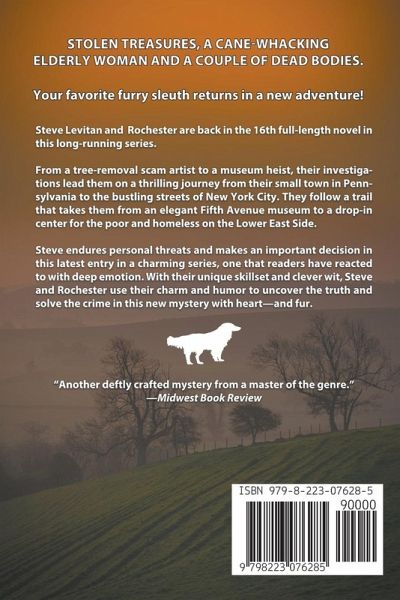 Stolen treasures, a cane-whacking elderly woman and a couple of dead bodies. A favorite furry sleuth returns in a new adventure! Amateur sleuth Steve Levitan and his clue-sniffing golden retriever Rochester are back in the 16th full-length novel in this long-running series. With over 25,000 trade paperbacks and e-books sold, and hundreds of glowing reader reviews, it's clear that Rochester has captured the hearts of dog lovers and mystery fans. From a tree-removal scam artist to a museum heist, Steve and Rochester's investigations lead them on a thrilling journey from their small town in Pennsylvania to the bustling streets of New York City. They follow a trail that takes them from an elegant Fifth Avenue museum to a drop-in center for the poor and homeless on the Lower East Side. Steve endures personal threats and makes an important decision in this latest entry in a charming series, one that readers have reacted to with deep emotion. With their unique skillset and clever wit, Steve and Rochester use their charm and humor to uncover the truth and solve the crime in this new mystery with heart-and fur.