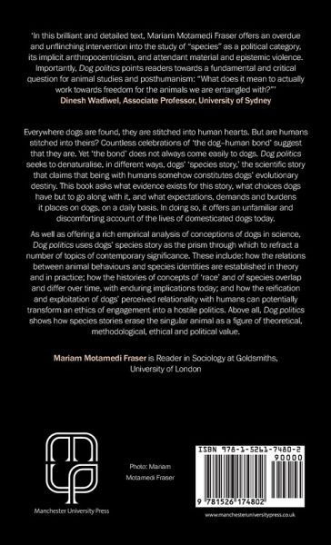 Dog politics is a critique of dogs' 'species story,' a scientific story which insists that dogs belong 'naturally' with humans. It asks what evidence exists to support this story, what practical consequences, for dogs, follow from it, and how it is woven into broader scientific shifts in understandings of species, animals, and animal behaviours