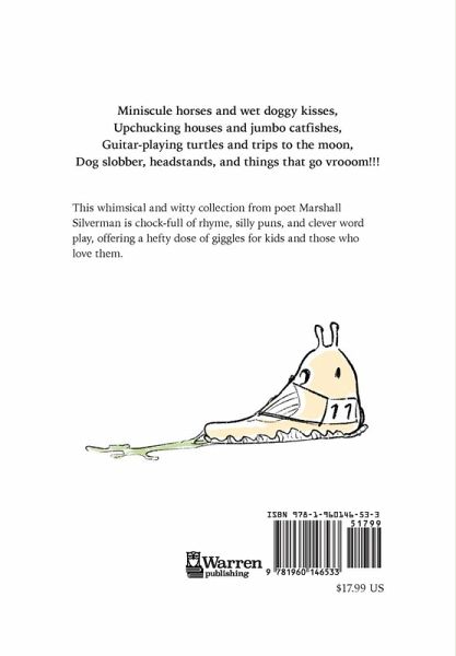 Miniscule horses and wet doggy kisses,Upchucking houses and jumbo catfishes,Guitar-playing turtles and trips to the moon,Dog slobber, headstands, and things that go vrooom!!! This whimsical and witty collection from poet Marshall Silverman is chock-full of rhyme, silly puns, and clever word play, offering a hefty dose of giggles for kids and those who love them.
