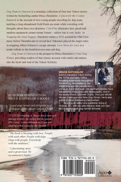 Dog Team to Dawson is a nostalgic collection of true Yukon stories written by bestselling author Bruce Batchelor. A Quest for the Cosmic Bannock is the account of two young people travelling by dog team, tackling a long-abandoned Gold Rush era route while wrestling with thoughts about their own destinies. Cost-Plus illustrates how greed and modern equipment cannot trump Nature - unless one is very lucky. In Trapping the Mad Trapper, Batchelor mines a 1932 account by Old Crow nurse Helen Thornthwaite to reveal how Yukoners played the major roles in stopping Albert Johnson's escape attempt. Love Story for Lucy is a tender tribute to the bond between man and dog. Dog Team to Dawson is the prequel to Bruce Batchelor's Nine Dog Winter, providing readers of that classic account with earlier adventures into the heart and soul of the Yukon Territory. Bruce Batchelor lived in Canada's Yukon during the 1970s and early 1980s, travelling extensively throughout the territory, fascinated by the wilderness and the people who chose to live in the bush. His Northern stories have appeared in magazines and newspapers, and in the books Yukon Channel Charts, The Lost Whole Moose Catalogue and Nine Dog Winter. He is also author of Book Marketing DeMystified. Bruce Batchelor is an editor and publisher, living in Victoria, BC, with his wife Marsha, their son Dan and a gentle black dog named Browser. Reviewer comments on Bruce Batchelor's books "A real page turner and delightful read. An instant classic about Canada's North." "I LOVED reading it. Bruce has a rare gift among writers: he writes like he speaks. His 'voice' comes through as if you are sharing a hot cocoa by the fireside." "The book is bursting with love. People with each other. People with dogs. Dogs with people. Everybody with the outdoors." "A fascinating story and a great read. We recommend it highly."