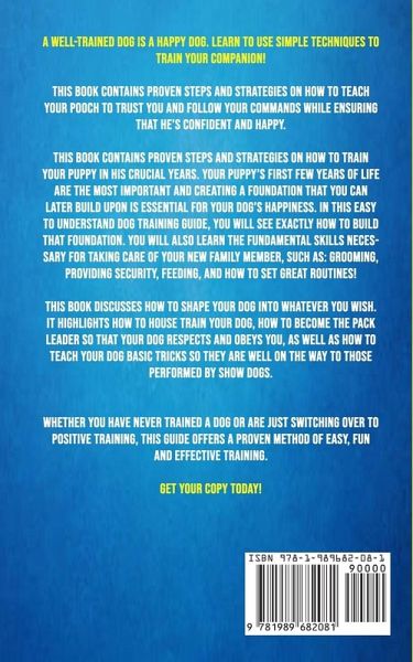 A well-trained dog is a happy dog. Learn to use simple techniques to train your companion! This book contains proven steps and strategies on how to teach your pooch to trust you and follow your commands while ensuring that he’s confident and happy. This book contains proven steps and strategies on how to train your puppy in his crucial years. Your puppy’s first few years of life are the most important and creating a foundation that you can later build upon is essential for your dog’s happiness. In this easy to understand dog training guide, you will see exactly how to build that foundation. You will also learn the fundamental skills necessary for taking care of your new family member, such as: grooming, providing security, feeding, and how to set great routines! This book discusses how to shape your dog into whatever you wish. It highlights how to house train your dog, how to become the pack leader so that your dog respects and obeys you, as well as how to teach your dog basic tricks so they are well on the way to those performed by show dogs. Here is a preview of what's inside... Being The Pack Leader Positive Reinforcement House Training Basic Commands Going For A Walk Socializing Your Dog Whether you have never trained a dog or are just switching over to positive training, this guide offers a proven method of easy, fun and effective training. Download your copy today!