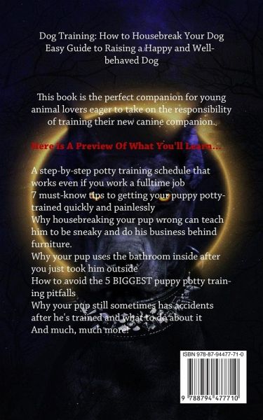 This book is the perfect companion for young animal lovers eager to take on the responsibility of training their new canine companion. Here Is A Preview Of What You'll Learn... A step-by-step potty training schedule that works even if you work a fulltime job 7 must-know tips to getting your puppy potty-trained quickly and painlessly Why housebreaking your pup wrong can teach him to be sneaky and do his business behind furniture. Why your pup uses the bathroom inside after you just took him outside How to avoid the 5 BIGGEST puppy potty training pitfalls Why your pup still sometimes has accidents after he's trained and what to do about it And much, much more!
