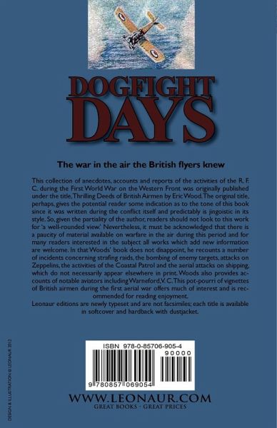 The war in the air the British flyers knew This collection of anecdotes, accounts and reports of the activities of the R. F. C. during the First World War on the Western Front was originally published under the title, Thrilling Deeds of British Airmen by Eric Wood. The original title, perhaps, gives the potential reader some indication as to the tone of this book since it was written during the conflict itself and predictably is jingoistic in its style. So, given the partiality of the author, readers should not look to this work for 'a well-rounded view.' Nevertheless, it must be acknowledged that there is a paucity of material available on warfare in the air during this period and for many readers interested in the subject all works which add new information are welcome. In that Woods' book does not disappoint, he recounts a number of incidents concerning strafing raids, the bombing of enemy targets, attacks on Zeppelins, the activities of the Coastal Patrol and the aerial attacks on shipping, which do not necessarily appear elsewhere in print. Woods also provides accounts of notable aviators including Warneford, V. C. This pot-pourri of vignettes of British airmen during the first aerial war offers much of interest and is recommended for reading enjoyment. Leonaur editions are newly typeset and are not facsimiles; each title is available in softcover and hardback with dustjacket.