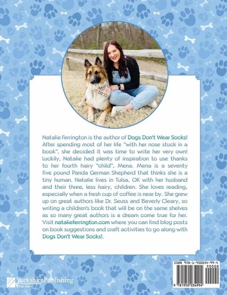 Dogs Don't Wear Socks! Mena's owner stumbles upon the craziest thing he's ever seen! What is it you ask? His lovable pup, Mena, just wants to look her best, but wait a minute... DOGS DON'T WEAR SOCKS! Some dogs love toys and treats, but not this one! All she wants is to stand out.... in style! Will Mena's owner learn to love his pup and all of her quirky ways, or will he finally convince her to act like other dogs? This story delivers lots of laughs, with a heartfelt message of loving everyone just as they are!