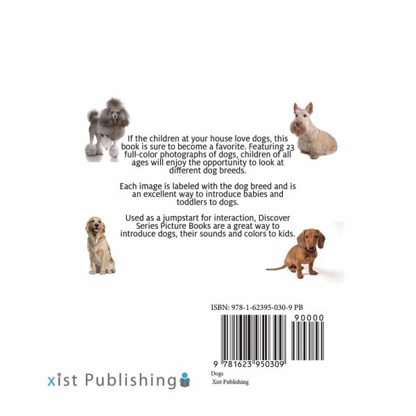 Discover Series Books for Babies & Toddlers If the children at your house love dogs, this book is sure to become a favorite. Featuring 23 full-color photographs of dogs, children of all ages will enjoy the opportunity to look at different dog breeds. Each image is labeled with the dog breed and is an excellent way to introduce babies and toddlers to dogs. Used as a jumpstart for interaction, Discover Series Picture Books are a great way to introduce dogs, their sounds and colors to kids.