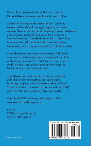 Passion leads to obsession. Love flames up and out. Desire's driven downward until men become DOGZ; a full-blown novel set in the bars, nightclubs, beaches and sex clubs of San Francisco and New York City in the 1990s.
