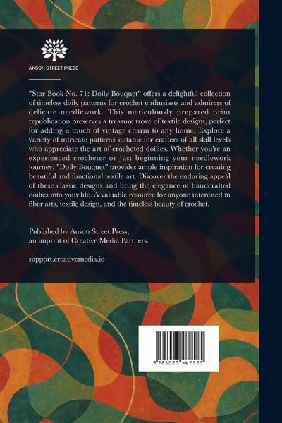 "Star Book No. 71: Doily Bouquet" offers a delightful collection of timeless doily patterns for crochet enthusiasts and admirers of delicate needlework. This meticulously prepared print republication preserves a treasure trove of textile designs, perfect for adding a touch of vintage charm to any home. Explore a variety of intricate patterns suitable for crafters of all skill levels who appreciate the art of crocheted doilies. Whether you're an experienced crocheter or just beginning your needlework journey, "Doily Bouquet" provides ample inspiration for creating beautiful and functional textile art. Discover the enduring appeal of these classic designs and bring the elegance of handcrafted doilies into your life. A valuable resource for anyone interested in fiber arts, textile design, and the timeless beauty of crochet. This work has been selected by scholars as being culturally important, and is part of the knowledge base of civilization as we know it. This work is in the public domain in the United States of America, and possibly other nations. Within the United States, you may freely copy and distribute this work, as no entity (individual or corporate) has a copyright on the body of the work. Scholars believe, and we concur, that this work is important enough to be preserved, reproduced, and made generally available to the public. We appreciate your support of the preservation process, and thank you for being an important part of keeping this knowledge alive and relevant.